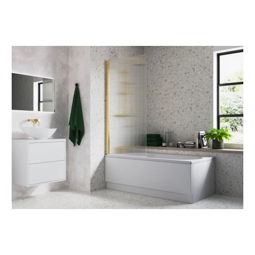 Tags: Fluted 800x1500mm Single Straight Bath Screen (5mm) - Brushed Brass, DIBS0146, Bath Screens